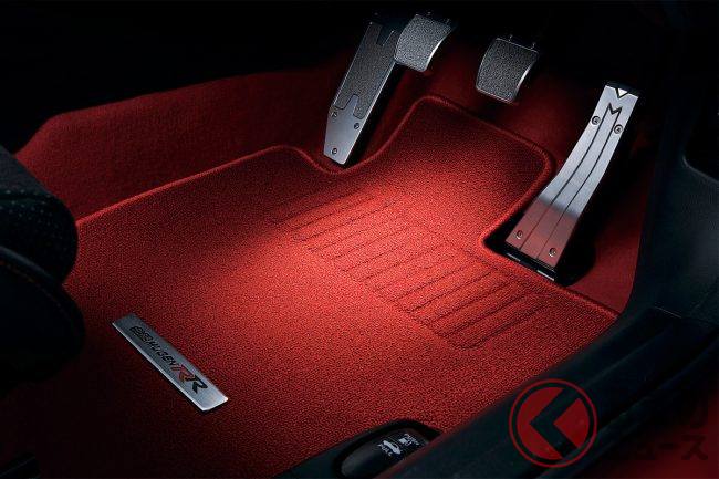 ベースよりもシャープな印象を受けるエクステリアは、カーボンやアルミ素材のパーツを用いることで軽量化に加えて空力性能もアップ。専用セミバケットシートを配したインテリアも特徴のひとつです。