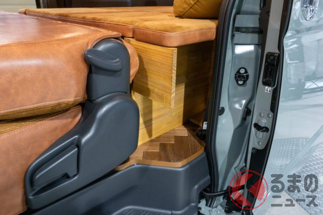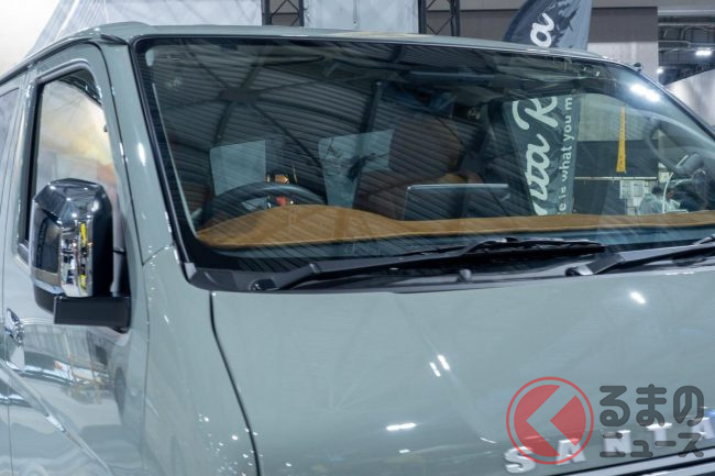 スタッフの方に苦労した点などを聞くと「最近のハイエースはフェイス部分にセンサーがあるので、それら機能と干渉しないように気をつけた」と話していました。そのおかげで、センサーがあることによる違和感は全くありませんでした。