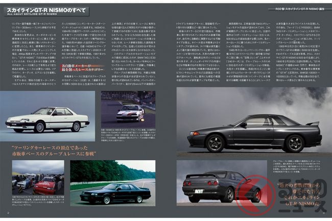 マガジンは「スカイラインGT-R NISMOのすべて」など4つの章で「スカイラインGT-R NISMO」について詳しく紹介。レースを席巻したR32型スカイラインGT-R、レース仕様車はもちろん、その戦歴も振り返るといいます。