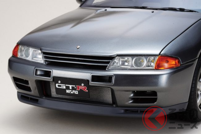 同シリーズでは「スカイラインGT-R NISMO」の特徴であるエアインテークに加え、標準の“スカイラインGT-R”との相違点であるフロントグリル上方に設けられた開口部や、”スカイラインGT-R NISMO”の証しである当時のNISMOロゴも忠実に再現されています。