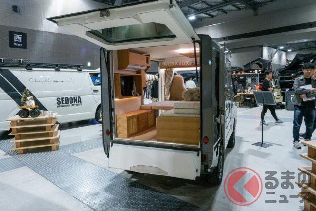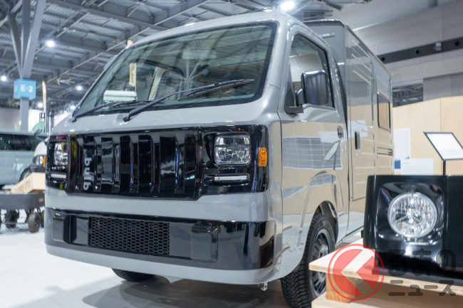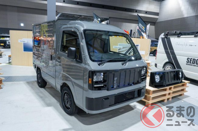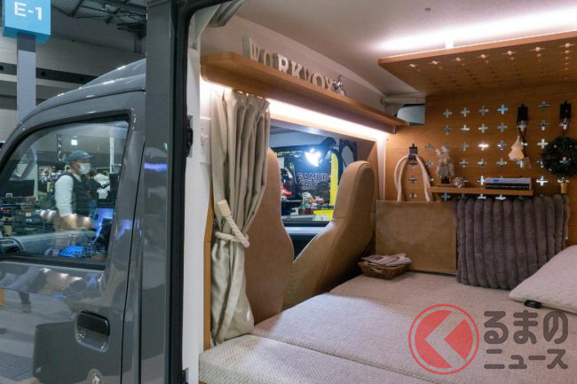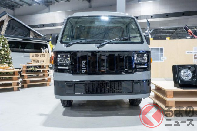 約325万円! ダイハツ「“レトロ顔”軽トラ!?」初公開! 旧車デザインな丸目仕様もある「カスタム」モデル! 車中泊もできそうな広々仕様「WORKVOX bulb」登場