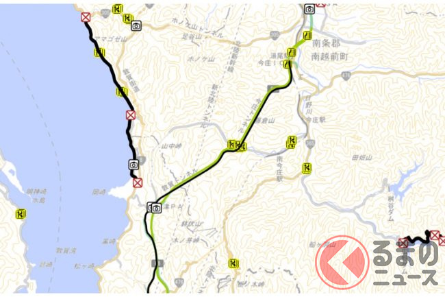 この影響で、今庄IC→敦賀ICが通行止めに。ちょうど福井県の嶺北エリアと嶺南エリアをつなぐ区間で、あいだには3000m級の「今庄トンネル」「敦賀トンネル」があるほか、う回路である国道8号も、長い山岳区間となっています。事故現場の61.7キロポストは、今庄トンネルを出て、敦賀市内に入ったばかり。杉津PA手前の、カーブが連続する区間です。