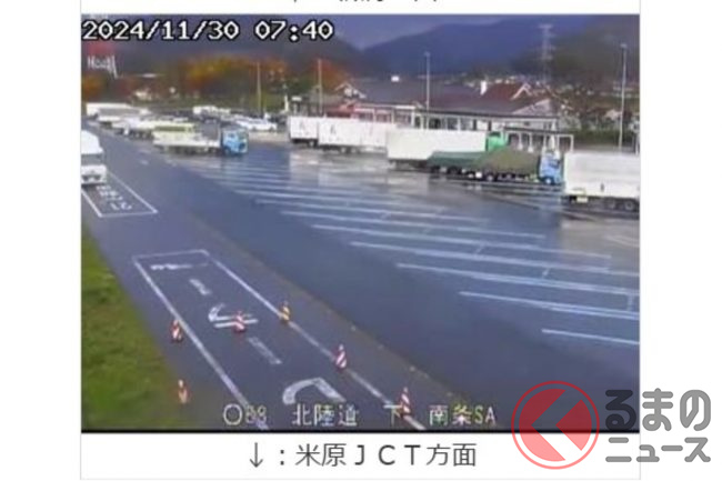 「すごい事故…」 北陸道が一時「通行止め」発生 関西方面の“重要地点”が封鎖状態に!? う回路も「山道走行」必須で混雑