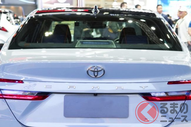 トヨタ新型「FF最大・最上級セダン」登場! 全長“5m”級&斬新「サメ顔」採用! 特別カラーの“豪華内装”と安全機能も魅力の「カムリ」実車公開!
