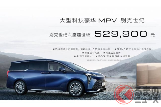 そのクルマは、米国のゼネラルモーターズ(GM)が製造・販売するブランド「ビュイック」が中国市場で展開しており、同社のMPV(多目的乗用車)の中で最上級モデルとして位置づけられています。