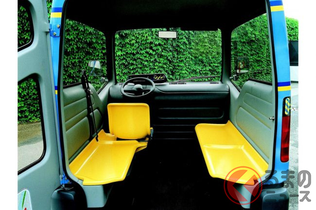 驚くことに、この小さな車体にドライバー1名と乗員3名の乗車が可能です。側面にはドアがなく、乗り降りの際は後部にある横ヒンジのハッチを介して行います。