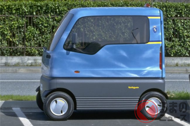 BIGAは全長約2m、全幅は約1.5mしかない完全な箱型の車体を特徴としました。移動手段として必要な装備は最小限ながらも、サイド・リアのウィンドウグラフィックやボディ下半分をグレー樹脂で覆ったデザインは、都市交通として高い洗練性を持っていました。