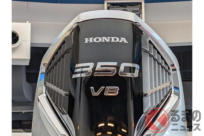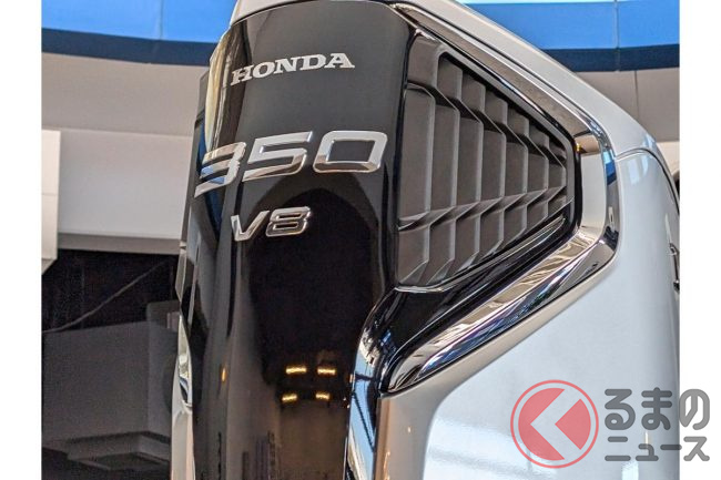 ホンダ“史上初”の「“V8”エンジン」がスゴイ! 350馬力×流麗デザインの超カッコイイ「BF350」! “NSX”との意外な共通点もある新型「フラッグシップ船外機」はどうなのか