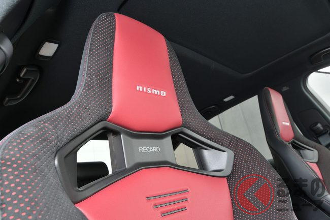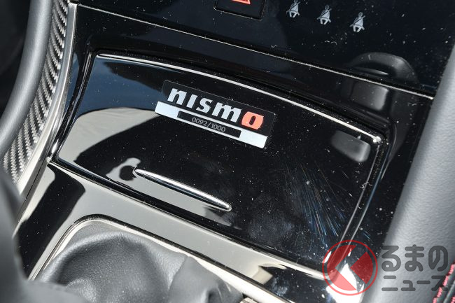 加えて、日産初採用となるマットガンメタリック塗装のホイールをNISMOだけに装備して差別化し、エンジン組み立て担当者を記した匠ラベル、100台限定を刻印した専用シリアルナンバープレート、専用エンブレムも装着されました。