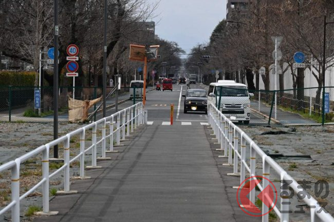そこで整備が進められているのが府中東小金井線で、五日市街道から東八道路を経て、甲州街道(国道20号)までを縦に連絡する役割を果たします。途中でJR中央線の東小金井駅前を抜け、西武多摩川線の西側を並行します。総延長は約5kmです。道路幅は16m~18m程度の2車線です。