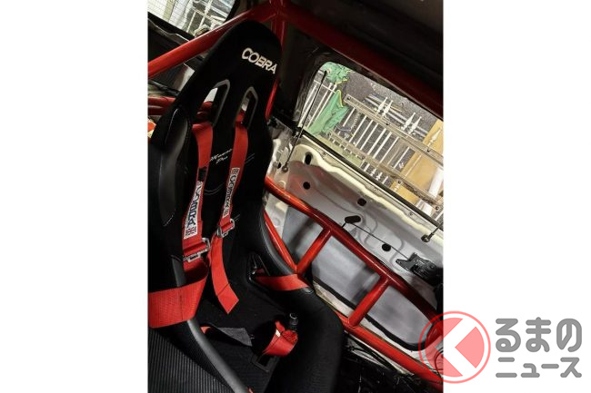室内はフルゲージ化、ドアバーで補強、フルバケットシートを装備しています。