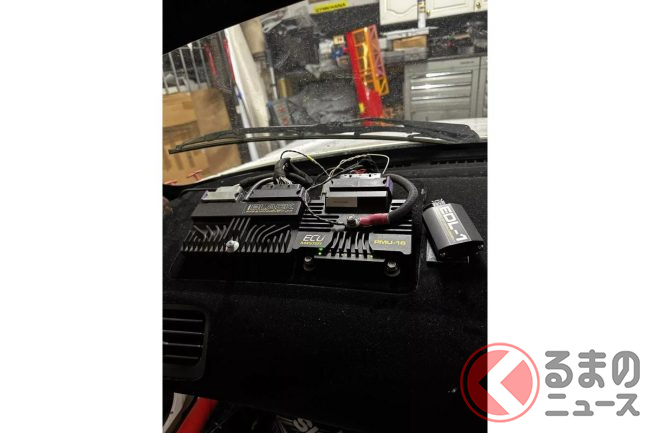エンジンはフル鍛造へ再構築され、Precision製「Gen2 6266」のターボを付け、ECU MASTER製のデータロガーを備えた「BLACK ECU」に換装されています。また、メータークラスターもECU MASTER製のデジタルメーターに換装されています。