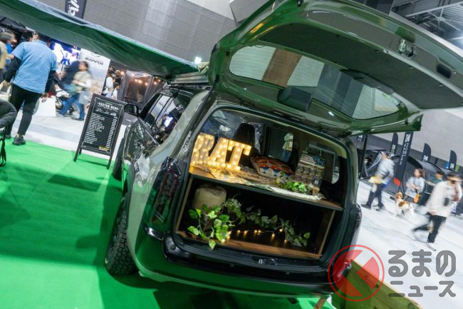 いかにもキャンプ向けなプロボックスカスタム。スタッフの方によると、興味を持つ来場者はすでにプロボックスを持っているユーザーが多いとのことでした。展示車は税込約331万円とアナウンスされています。