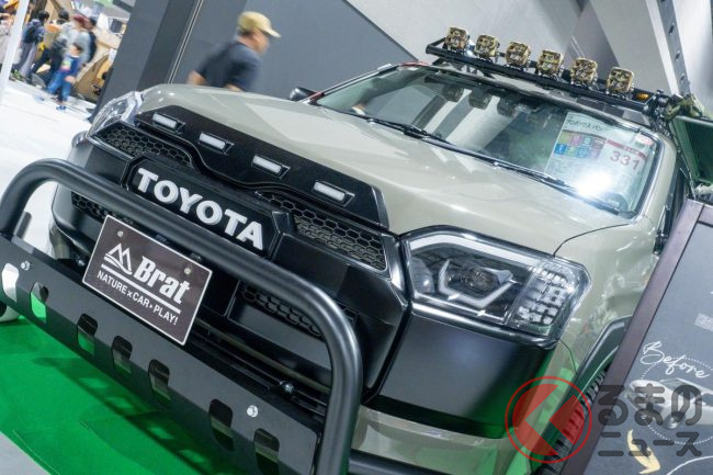 今回注目したいのは、Brat(ブラット)ブースで展示されていたトヨタ「プロボックス」のカスタムカーです。オフロード仕様となったプロボックスについて、詳細を見ていきましょう。