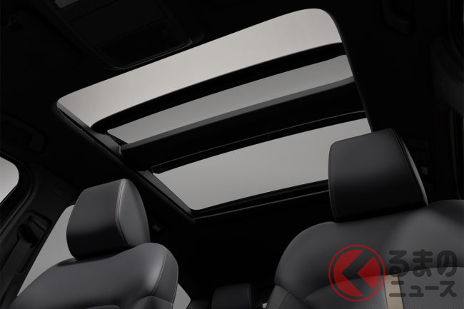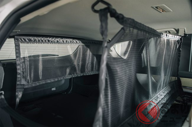 パノラマサンルーフの標準装備化のほか、急ブレーキ・事故等の際、2列目や前席への荷物の侵入を防止するパーティションネットを設定しました。