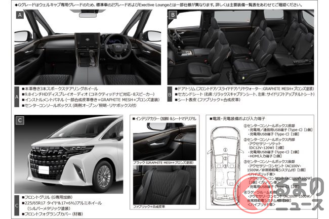 このヒントとなりそうなのが、現在のところ福祉車両の「ウェルキャブ サイドリフトチルトアップシート車」専用のグレードとしてアルファードに用意されている「G」グレードです。
