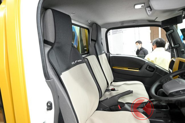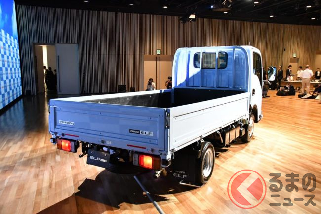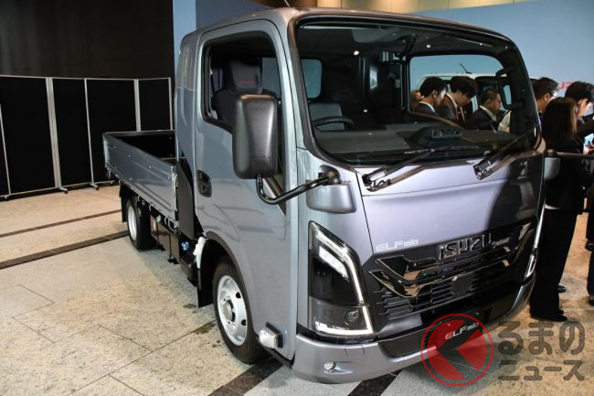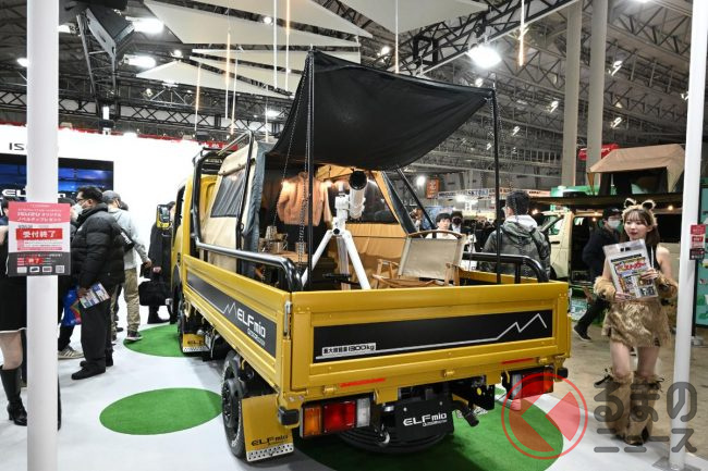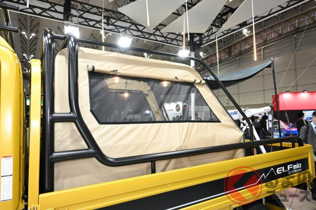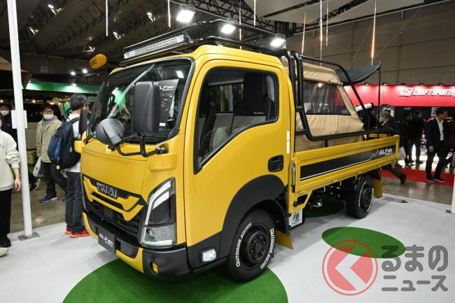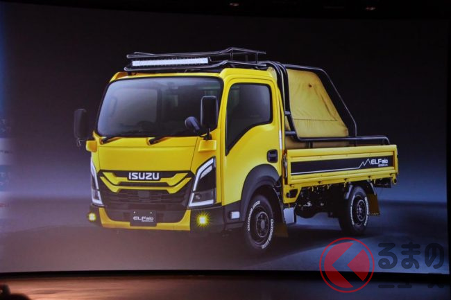 いすゞが斬新「クロスオーバーモデル」を初公開!? スポーツテイストなモデルも!? 3台のカスタマイズ「エルフミオ」をTAS25で披露