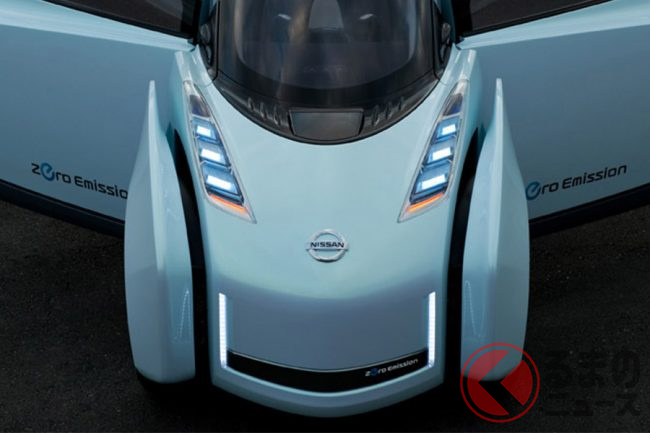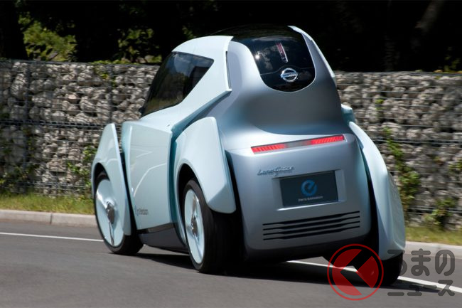 全幅わずか1.1m! 日産の「“めちゃ細”四輪車」がスゴい! 前後2人乗り“タンデム仕様”が斬新すぎる「ランドグライダー」どんなモデル?