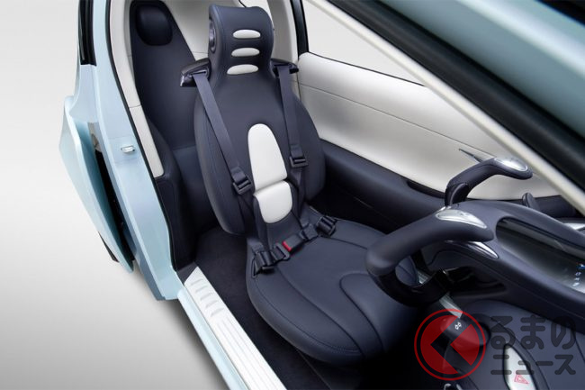 ボディサイズは全長3100mm×全幅1100mm×全高1415mmと、車幅が極端に小さくなっており、そのため、座席は縦に2列並ぶ形に配置され、まるでバイクのタンデムのように乗車します。