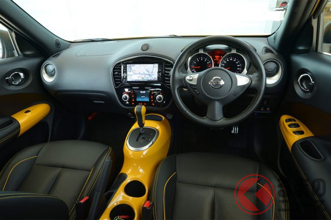 ジュークには当時、サイドミラーやアウタードアノブといったエクステリアパーツへの特別専用カラーや、フードとバックドアに引かれたスポーツストライプ(ディーラーオプション)などの内外装をカラーコーディネイトできる「パーソナライズパッケージ」という特別仕様車が設定されていました。