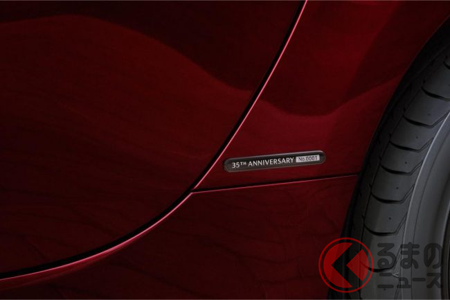 35周年記念エディションモデルは、エクステリアでは専用のアーティザンレッドのボディカラー、インテリアではタンナッパレザーシートを採用することが伝えられ、「35TH ANNIVERSARY」とロットナンバーが入ったボディサイドに付けられたバッジの画像1枚が公開されていますが、そのほかの米国仕様における詳細な仕様は明らかにされていません。
