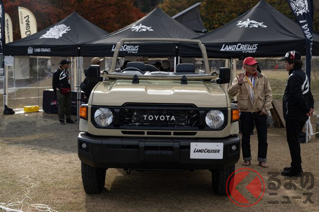 トヨタが「超凄いランクル」実車公開! 斬新過ぎる「2ドア&オープン」で注目集める!? 本家が展示した「謎の70」とは