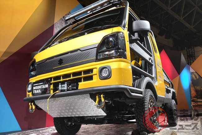 スズキの販売協力店を兼ねる整備工場を経営するT氏に話を聞いてみると、商用での利用はもちろん、最近で個人ユーザーが軽トラをカスタムするのが人気になっているといい、なかでも、オフロードイメージを演出するパーツの装着がトレンドとなっているそうです。