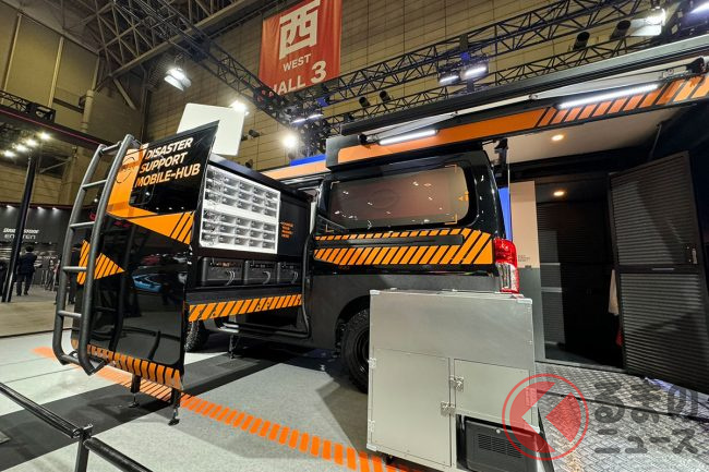また、前回の東京オートサロン2024で登場した商用バン「キャラバン」ベースの災害支援車両コンセプト「Disaster Support Mobile-Hub」に集まったユーザーの声を反映しながらバージョンアップさせた新仕様の「DISASTER SUPPORT SPEC.」を披露します。