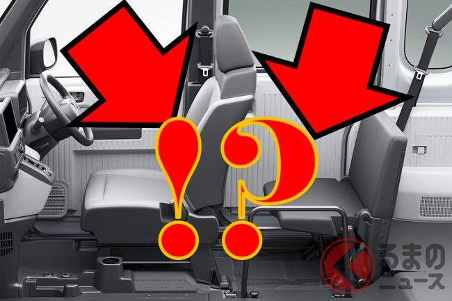 いっぽう、軽バンではラゲッジスペースを最大活用できる2人乗りの設定は、珍しいものではありませんが、N-VAN/N-VAN e:の特徴である左側ピラーレスの大開口を活かすためにタンデム配置にしたようです。