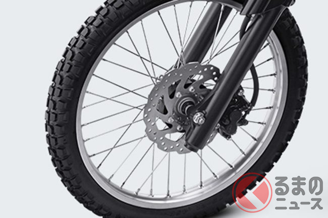 タイヤはデュアルパーパスタイプで、オンロードとオフロードの両方で優れたトラクションを発揮。