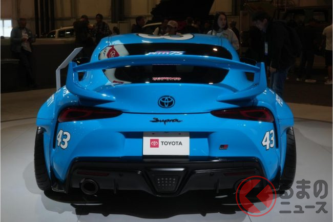 トヨタ「“FR”スポーツカー」公開! 旧車デザイン×迫力ウィング採用に「めっちゃ好き」の声! 3リッター「直6」搭載の「スープラバード」米に登場し注目集める