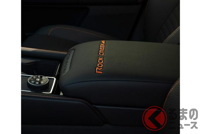 インテリアは、ブラック基調のシックなデザインに鮮やかなオレンジステッチが映えます。シートやコンソールには、ロックリークロゴが刺繍されており特別感を演出しています。