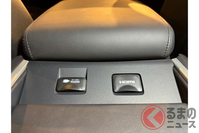 後部座席中央には大型モニターが設置され、DVDの再生やHDMI接続によるストリーミングサービスの視聴が可能です。