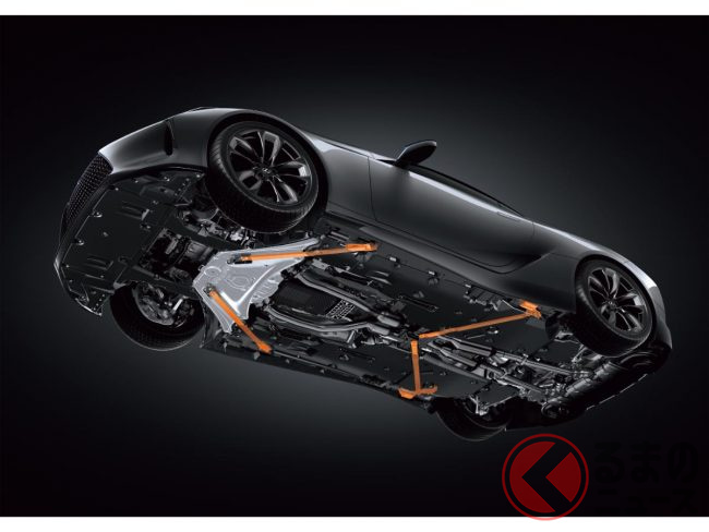 具体的には、LC500のフロントとリアに床下ブレースを追加。