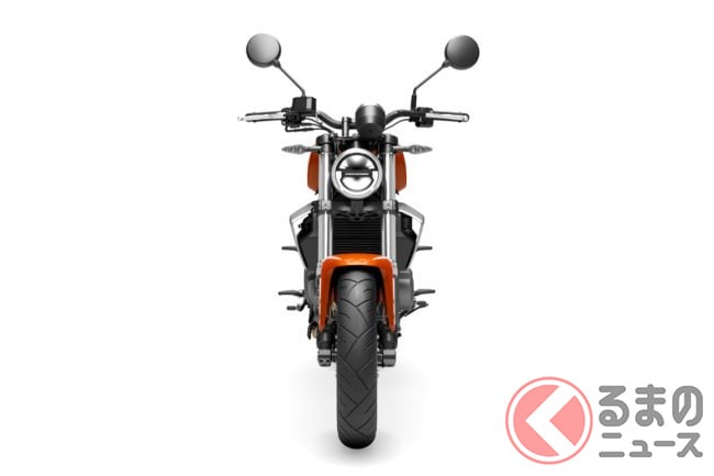丸型ヘッドライトとシンプルなタンクがクラシックな印象を与える一方、シャープでモダンなボディラインを持ち合わせています。