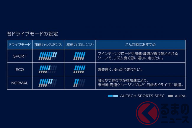 このほかの仕様はAUTECHに準じており、インテリアやエクステリアなどは同一です。