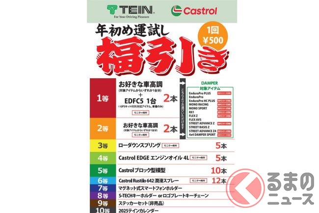 車高調が福引で当たるってマジ!? 40周年記念グッズも販売される東京オートサロン2025の「TEIN & CASTROL」ブースに急げ!