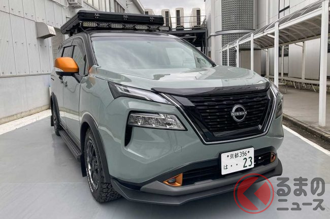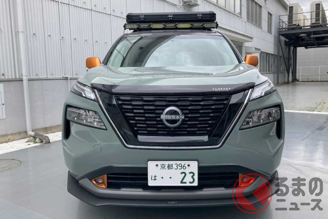 フロント周りは現行「エクストレイル」のパーツを移植。“エクストレイル顔”とすることで一気に迫力のある顔つきになり、アクティブなシーンにもピッタリなスタイルに変貌しました。