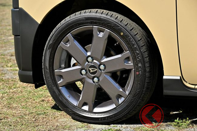 足回りをブラックに塗装されたスチールホイール&ハーフホイールキャップにすることで、オシャレなレトロ感も加味した仕上がりになっています。
