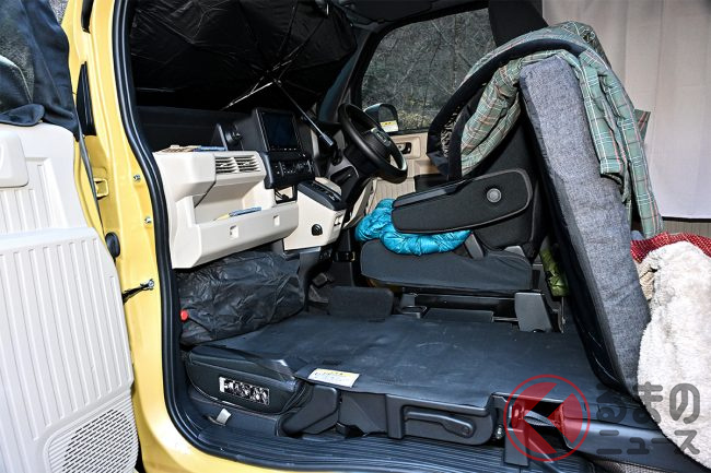 どちらのN-VAN e:も電気という生活に欠かせないものを有効活用した提案でしたが、そもそもN-VAN e:の車内はギリギリまで四角くし、荷物を積載しやすくしている設計もあり、車中泊にピッタリな軽バンとなっています。