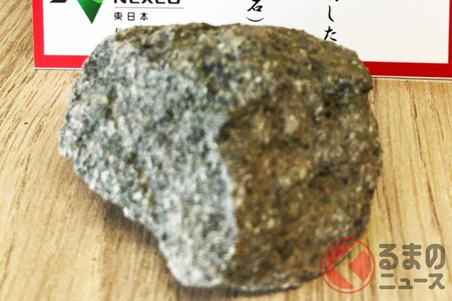 今回のNEXCOの投稿には配られる予定の石の写真が添付されていますが、ぱっと見はグレーの“単なる石”のように見えます。