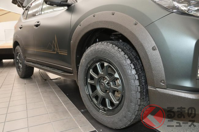 現行モデルベースのエクストレイル リマスタード コンセプトと同様の世界観のもと、専用の外装パーツでタフなイメージにカスタマイズしていますが、見どころは外観だけではありません。