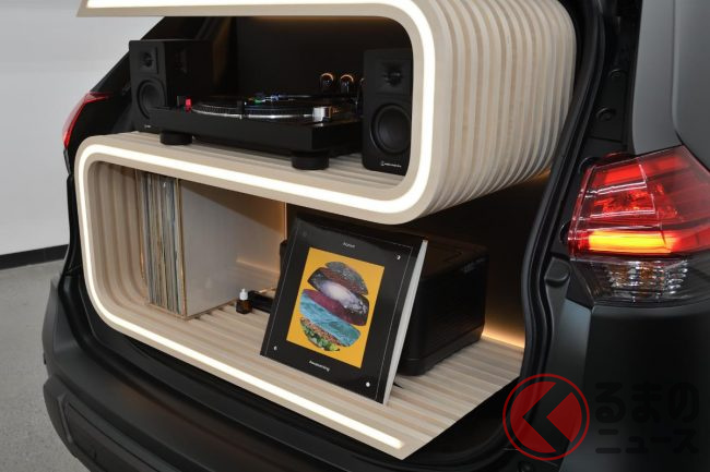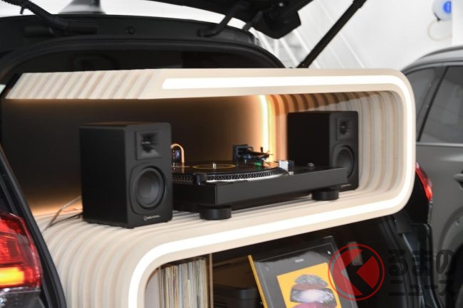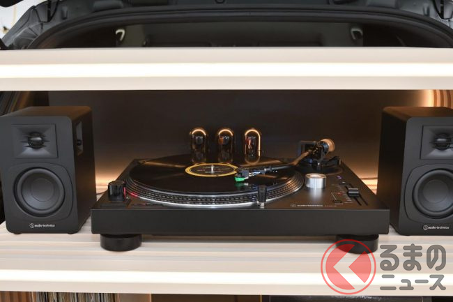 内装も専用のインテリア架装が施されていますが、なかでもオシャレなラゲッジの専用家具に搭載されたアナログレコード機器が注目されます。