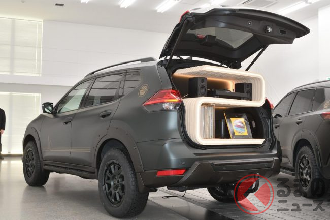 日産が「“スゴイ”SUV」発表! レコードプレーヤー搭載の「エクストレイル」!? ゴツタイヤ&“オシャ”塗装もカッコいい「“T32”リマスタード コンセプト」とは