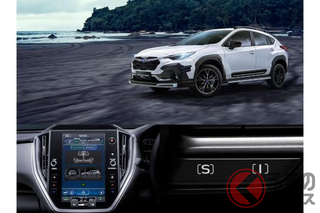 スバル新「SUV」発表! 水平対向エンジン搭載×全長4.7m級ボディ採用! 黒感高めた「フォレスター“スポーツE”」尼国に登場