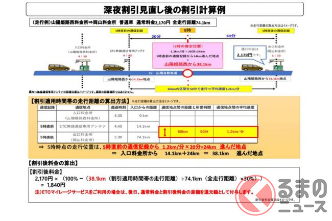 3 深夜割引の見直しにあわせ、400キロ超を走行した場合は距離に応じて割引率を引き上げ
