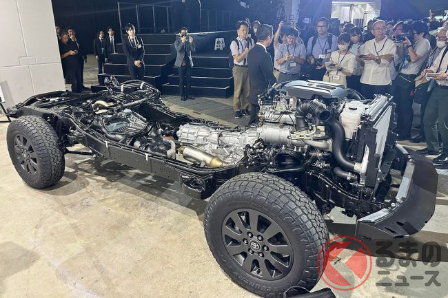 プラットフォームはフラッグシップモデル「ランドクルーザー300」と同様の「TNGA GA-F」を採用。基本性能の大幅な向上を実現。パワートレインは2.8リッター直噴ターボディーゼルエンジン+8速AT、または2.7リッターガソリンエンジン+6速ATです。