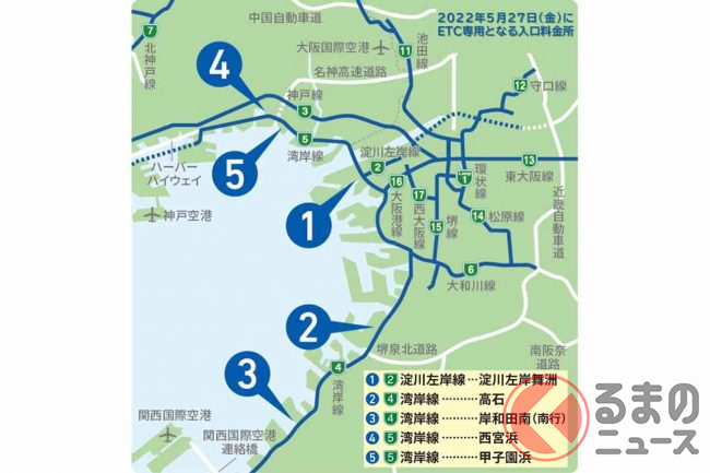 そのなかには、名神や新名神など、主要路線にある料金所も含まれています。