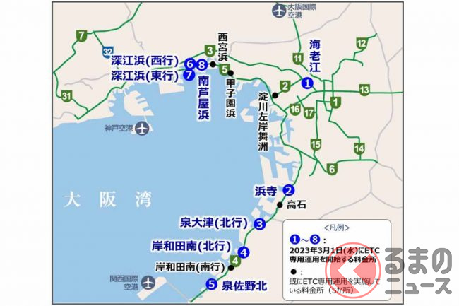 NEXCO西日本では昨年12月13日に、ETC専用化の対象料金所を発表。2025年2月20日から順次、四国・関西・九州エリアで新運用を開始していくとしています。