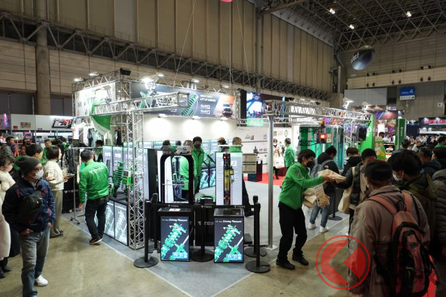 同社の担当者はH.B.S.について、ラリー走行で路面から強い入力があった際はもちろん、サーキット走行で縁石に乗った際にもバタつかないため、車両の挙動が安定することがメリットだと言います。また、公道を走行する一般車両でもメリットがあることを挙げ「ミニバンなどで多人数乗車した際にある『底突き感』が解消されるため、通常のバンプラバータイプと比較して乗り心地も格段に良くなる」と話します。来場者が興味深くデモ機に見入っている姿が印象的でした。